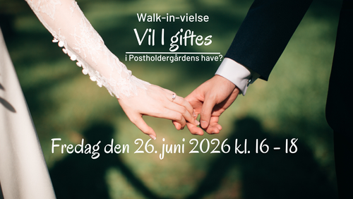 Fredag den 26.06.26 kl. 16-18 inviterer vi til vielser under åben himmel i Postholdergårdens romantiske have – et helt særligt sted at sige “ja” til hinanden.