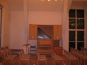 Efter et mellemspil med først et harmonium blev der også med tiden råd til et mindre orgel, som nu er flyttet med over i vores nye kirke.