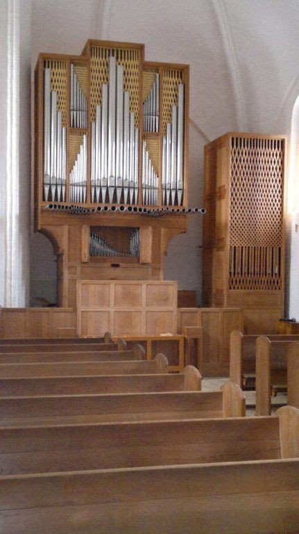 Orglet er leveret i 1956 af det internationalt kendte Aabenraa orgelbyggeri Marcussen & Søn. Det indeholder 31 stemmer (ca. 2100 piber) fordelt på tre manualer og pedal. Facaden, der er tegnet af Esben Klint og Mogens Koch, domineres af den vandret liggende »spanske« trompetstemme.